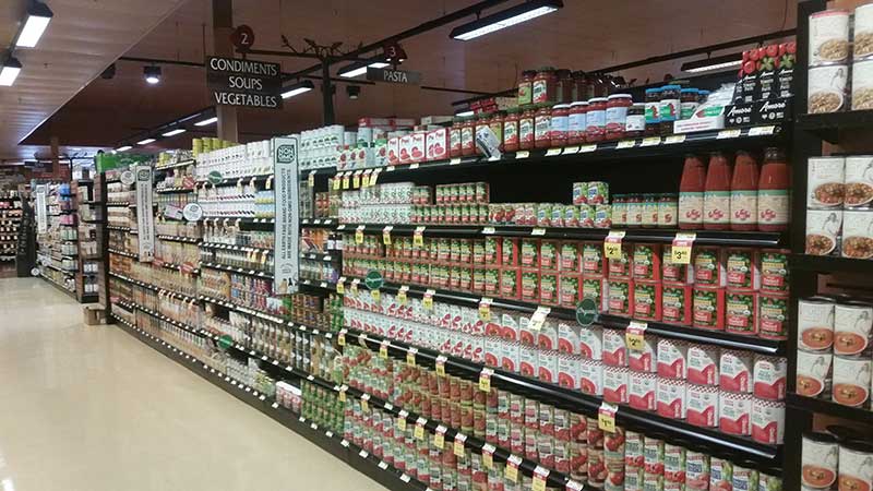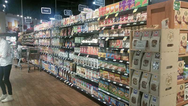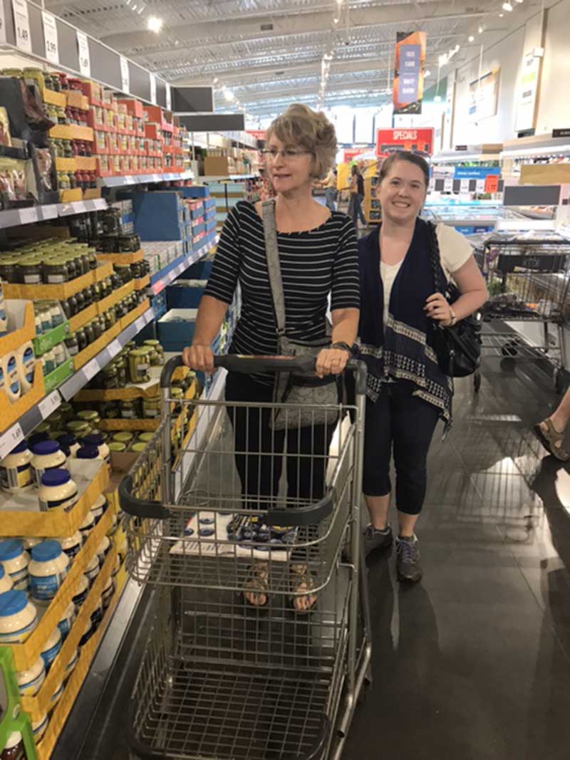 Alissa and I, with our quiet, modern shopping cart, check out some pantry products.
