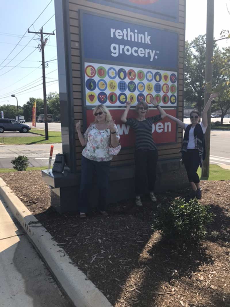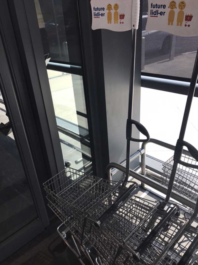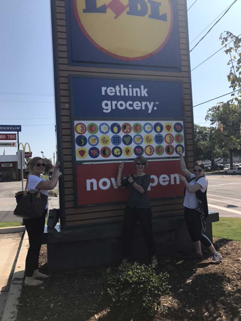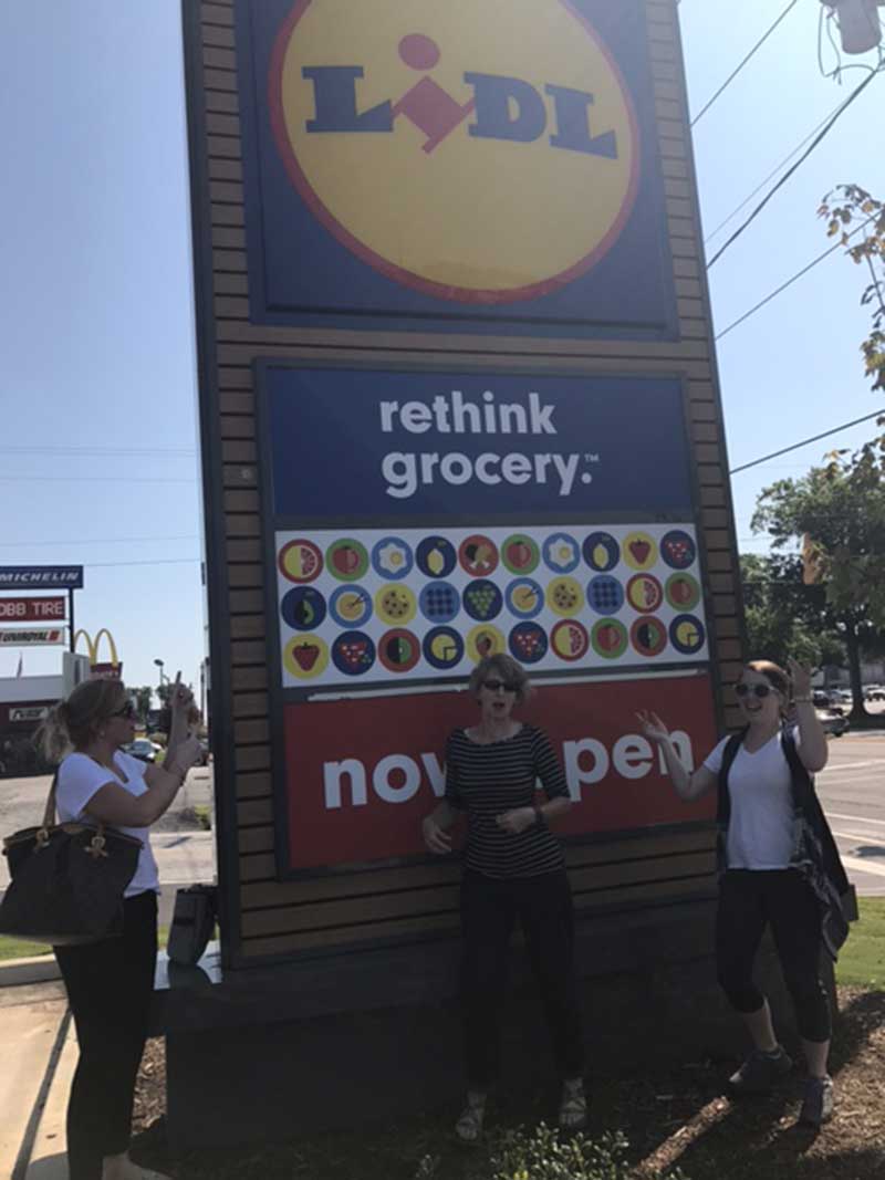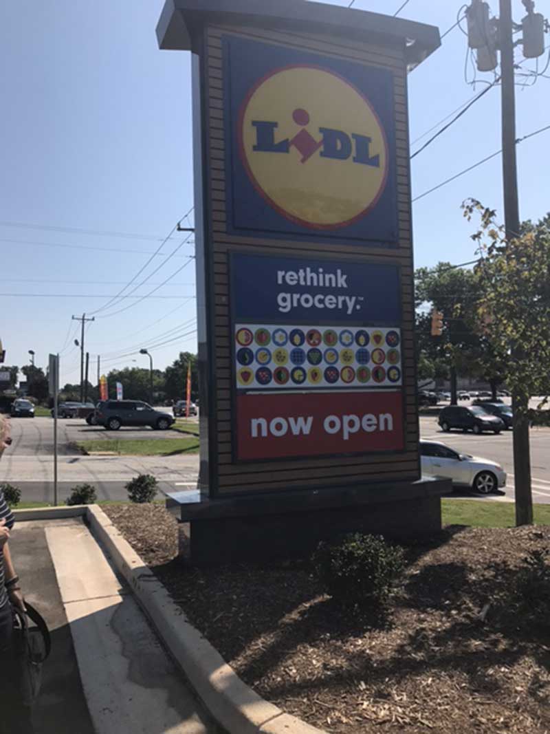 The sign outside the Greenville Lidl, inviting shoppers to “rethink grocery.”