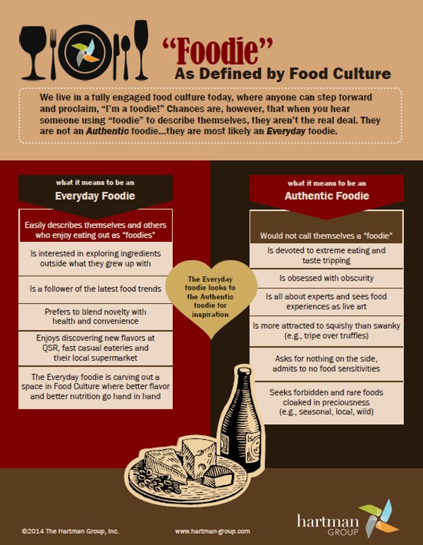 Those who are highly engaged foodie eaters may not necessarily be cooks, but they've eaten so broadly and with so much depth on the food spectrum that they know that "this is what it's supposed to taste like." These consumers have developed their palates as a sign of their involvement with food culture.